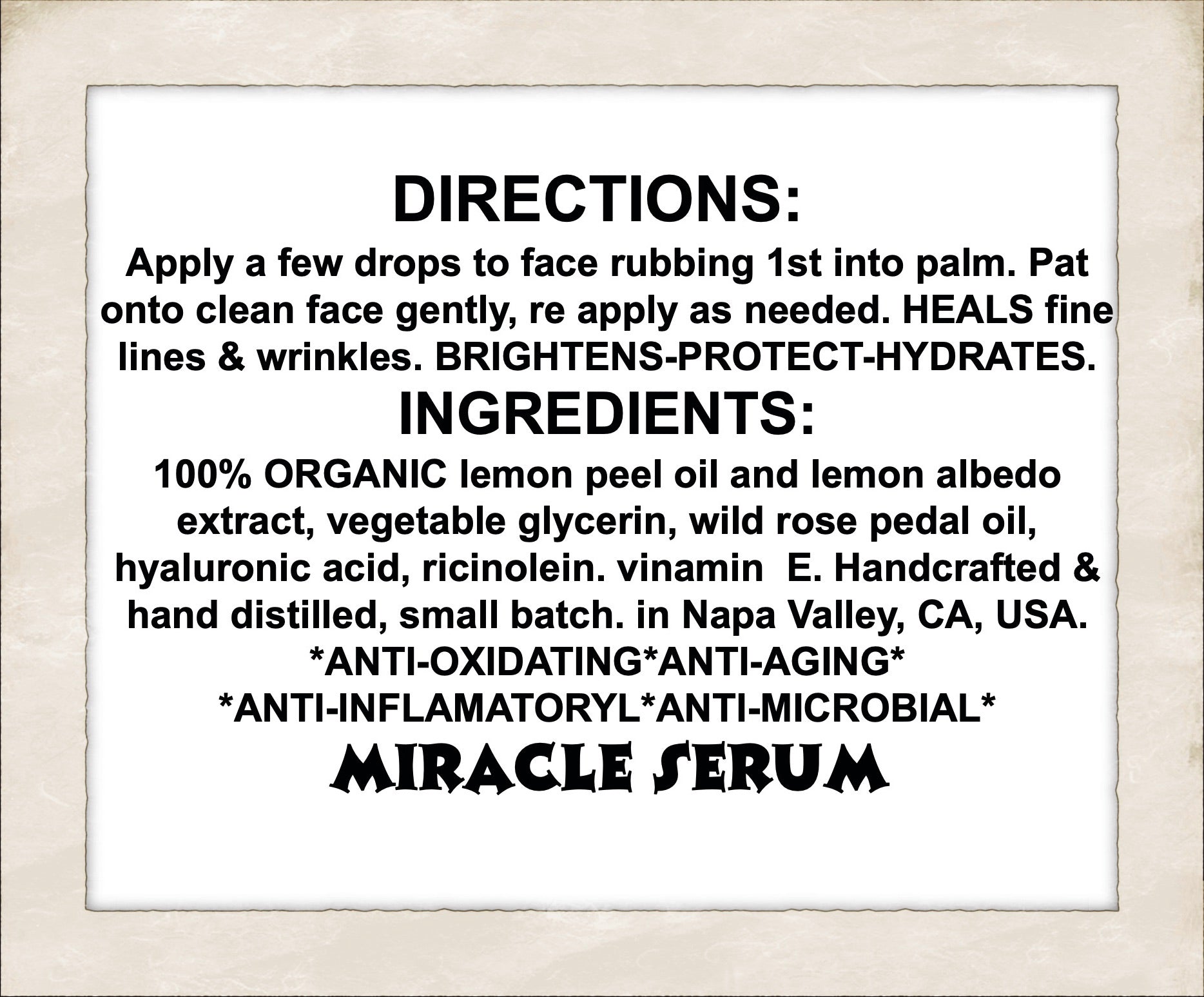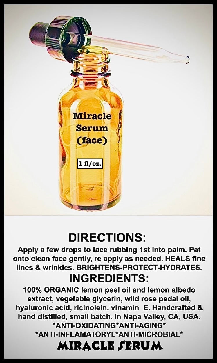 The BEST serum ever for a variety of skin issues. Infuses into deep skin layers and heals in 3-6 months without chemicals, frangrances, or preservatives.. Vitamins C, A, D & E intensive. 100% ORGANIC