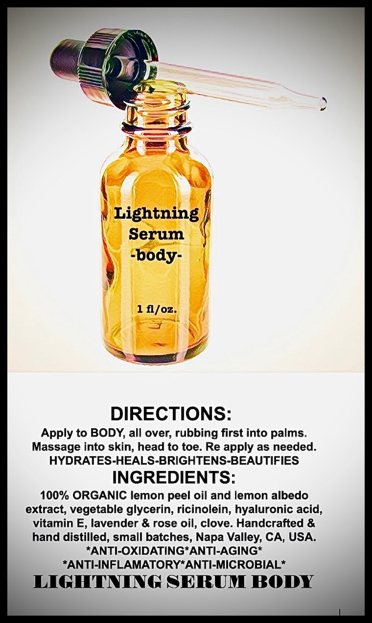 REVOLUTIONARY BODY SERUM for hydrating, brightening, toning, purifying, and healing. Vitamins C, A, D & E intensive. Potent, botanical, organic healing.